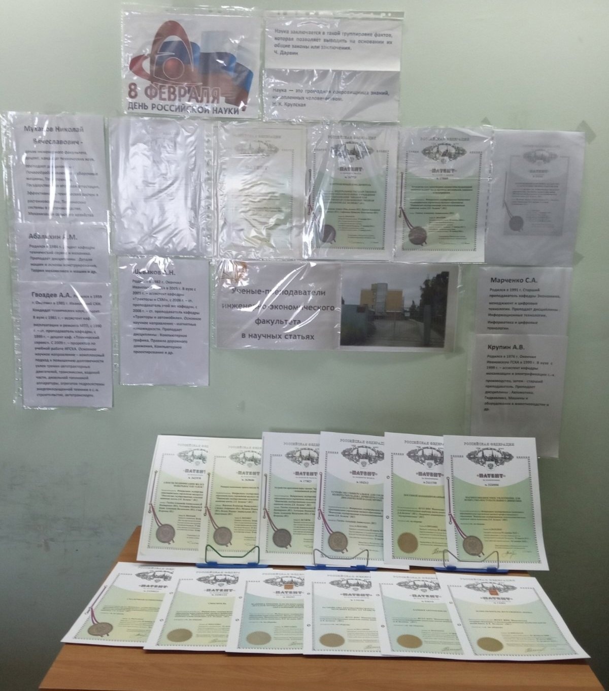 - "Выставка патентов наших ученых-преподавателей" (корп. М каб. 329).