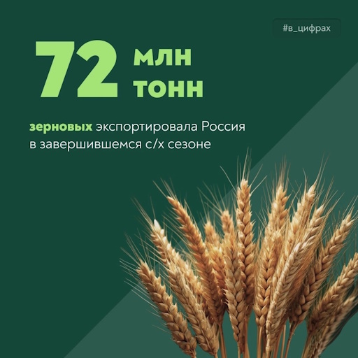 В завершившемся сельскохозяйственном году (с 1 июля 2023 года по 30 июня 2024 года) наша страна экспортировала на международные рынки 72 миллиона тонн зерновых.