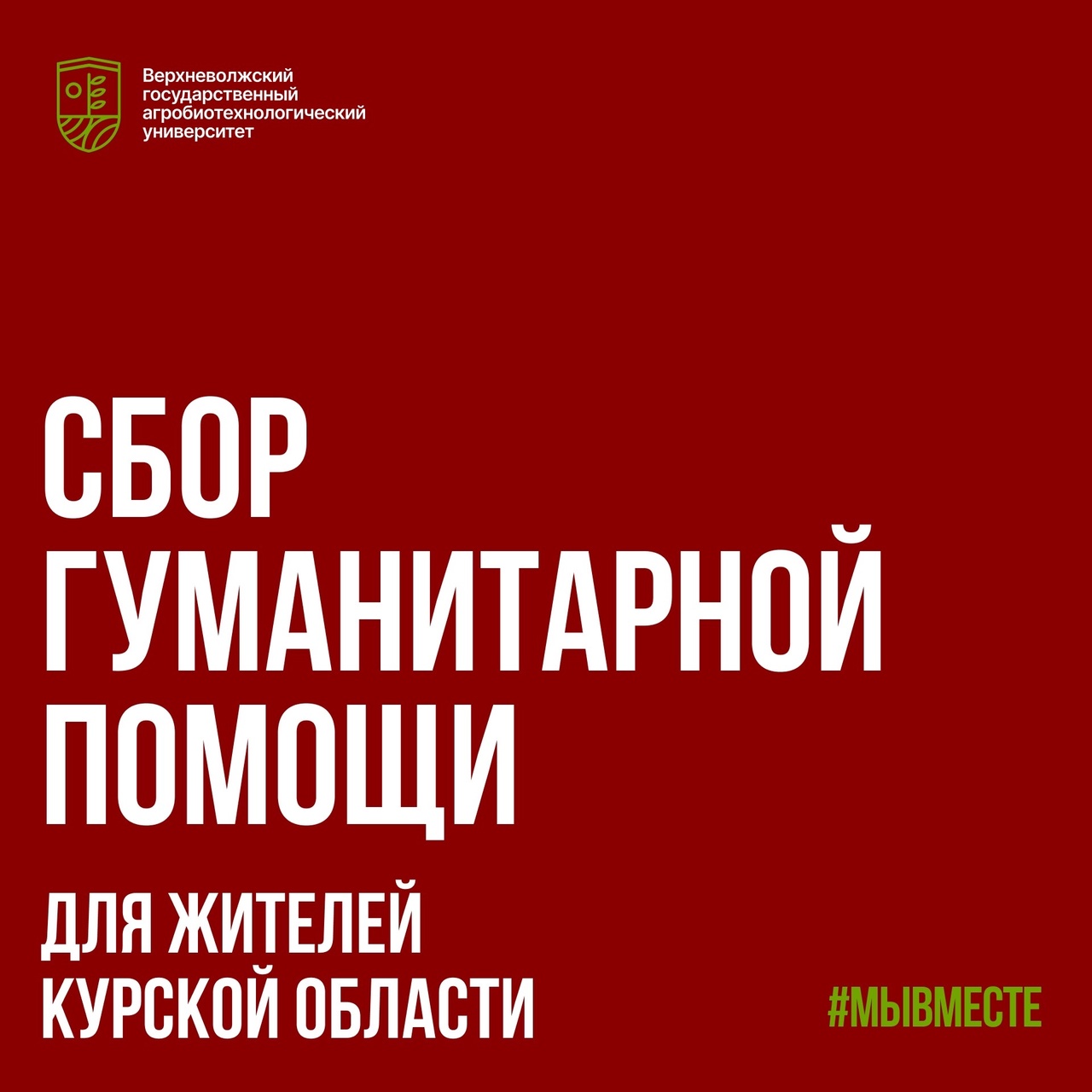 Наш университет не может оставаться в стороне в трудную минуту, поэтому штаб Верхневолжкого ГАУ #МЫВМЕСТЕ объявляет о срочном сборе гуманитарной помощи.