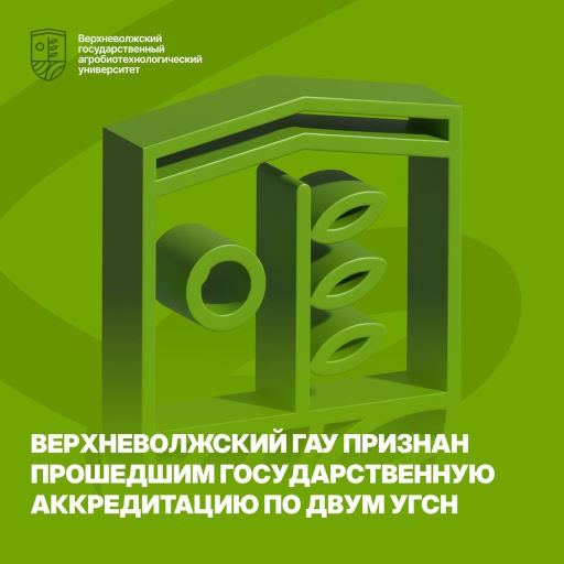 На основании приказа Федеральной службы по надзору в сфере образования и науки № 1049 от 20 мая 2025 года и по итогам проведенной государственной экспертизы, Верхневолжский ГАУ признан прошедшим государственную аккредитацию по двум УГСН: 35.00.00 — Сельское, лесное и рыбное хозяйство и 36.00.00 — Ветеринария и зоотехния среднего профессионального образования.