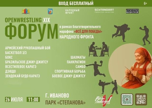 Приглашаем вас принять участие в грандиозном спортивном празднике «OPENWRESTLING - XIX», который пройдёт 26 июля в 11:00 в парке Степанова в Иванове.