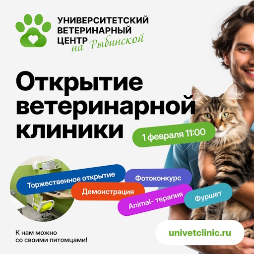 Мы рады объявить о торжественном открытии УНИВЕРСИТЕТСКОГО ВЕТЕРИНАРНОГО ЦЕНТРА НА РЫБИНСКОЙ 57!